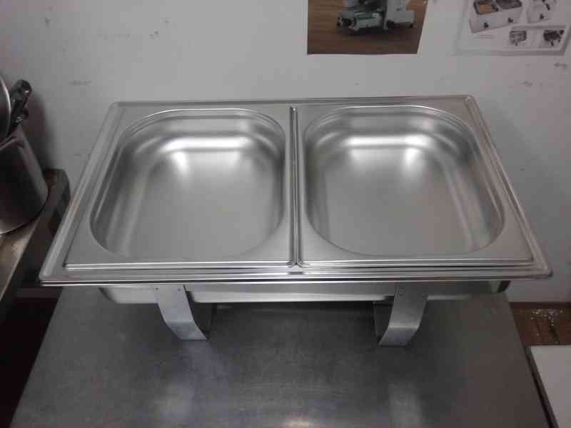 Chafing dish na rauty, oslavy, catering; sestava: 2 x gastro nádoba, nádoba na palivo, 1 litr gel. Jednoduchý a moderní chafing dish EKO; rozměr DxŠxH: 60,5 x 36 x 24 cm, obsah 2 x 4 litry; další možnosti na vyžádání. Cena: 1.590,- Kč vč. DPH + doprava. (kód: S436110-2P)