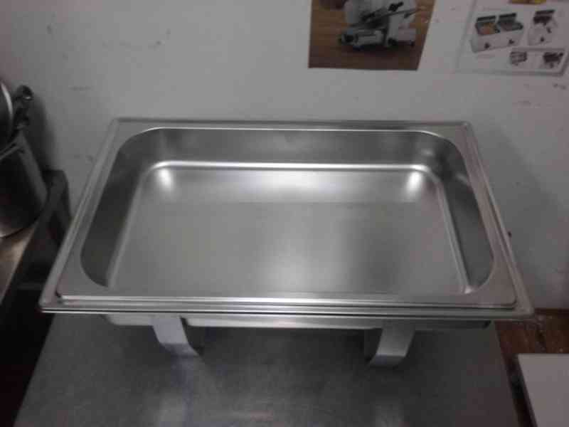 Chafing Dish na rauty, oslavy, catering - sestava: 1 x gastro nádoba 1/1, nádoba na palivo, 1 litr gel. Jednoduchý a moderní chafing dish EKO; rozměr DxŠxH: 60,5 x 36 x 24 cm, obsah 1 x 9 litrů; další možnosti na vyžádání. Cena: 1.490,- Kč vč. DPH + doprava. (kód: S436110-1P)