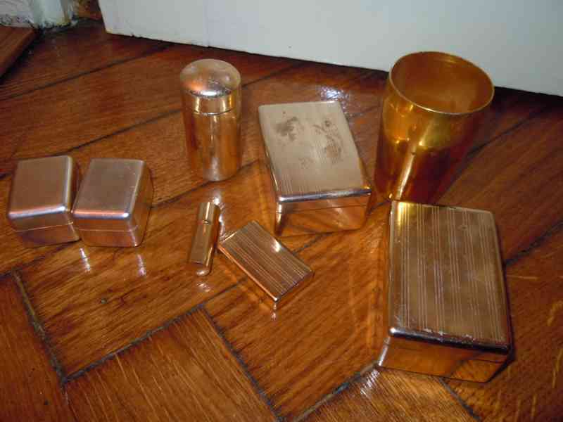 Prodám cestovní pánskou toaletní sadu ze zlaceného eloxovaného hliníku, celkem 8 ks (krabičky na mýdlo, kamenec, vatu, kelímek) v perfektním stavu, pěkná dekorace. Pouze vcelku za 95 kč. Osobní odběr na Praze 3, nebo zaslání přes Zásilkovnu či Balíkovnu. Volejte 770 630 523, nebo pište na morgiana007@gmail.com