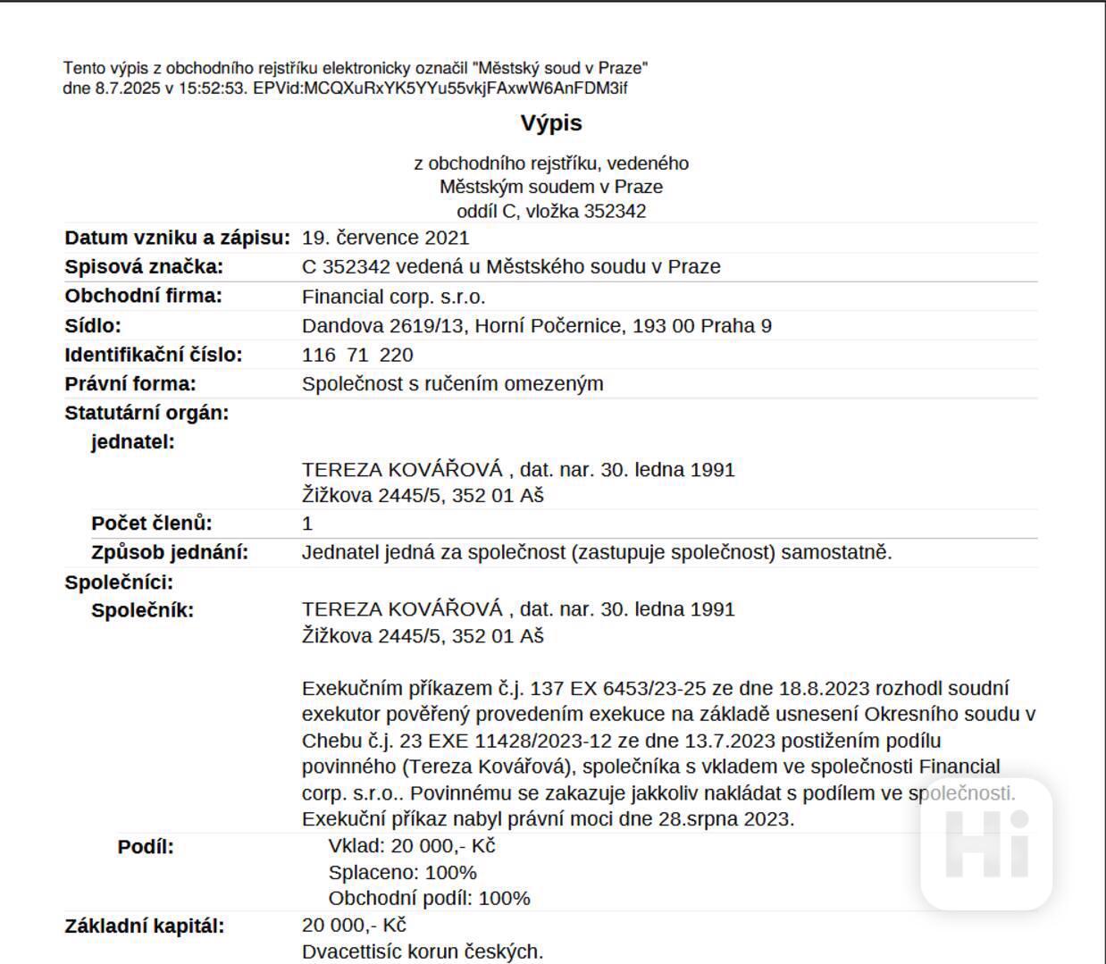 Obchodní podíl ve výši 100% ve společnosti Auto Buček s.r.o.