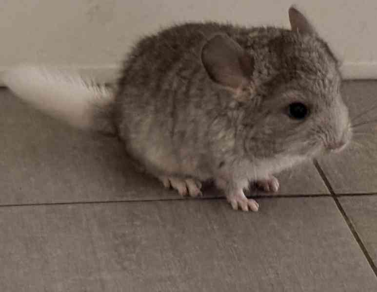 Prodáme samičku činčily vlnaté z našeho domácího odchovu, narozena dne 24.11.2025. Ve vrhu byla samotná. Barva světlý standard grey, bříško zcela, a ocásek z větší části bílý. Na zadečku má také bílé chloupky. Rodiče: otec stáří 4 roky, barva standard grey, matka stáří 3 roky, barva white silver mosaic - oba viz. fota. Už spolu měli třikrát také po jednom mláděti. Činčilka je živá a mazlivá, zvyklá na pohyb a chování od všech členů domácnosti. Je moc šikovná a celkově velice prospívá, oba její rodiče se o ní příkladně starají. K odběru od 17.1.2026 výše, kdy jí bude 8 týdnů, a to ve Staré Boleslavi (10 minut z Prahy po dálnici). Cena 2.000,- Kč.