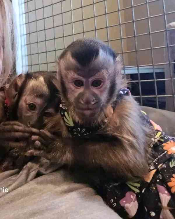 Roztomilá mláďata kapucínských opiček jsou připravená do dobrých domovů, aby si s nimi mohly hrát a neustále je rozesmívat. Mláďata jsou stará 4 měsíce a jsou veterinární kontrolována s veškerou dokumentací. Jsou velmi milá k ostatním domácím mazlíčkům a milá k dětem. Okamžitě napište SMS, ať nelitujete, že jste tato miminka neměla. Ráda vás vítají od dveří a lezou po vašem těle s hravými dovednostmi.