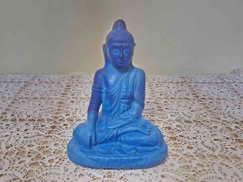 Vzácná Art Deco soška Budhy v modré barvě - Curt Schlevogt, Jablonec kolem 1934 až 1935.
