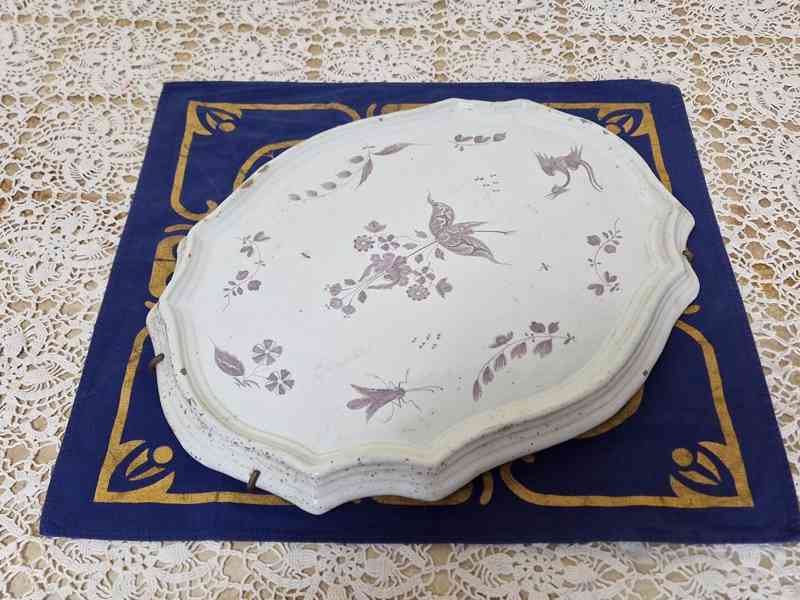 Zajímavý barokní masivní ručně malovaný fajánsový tác.