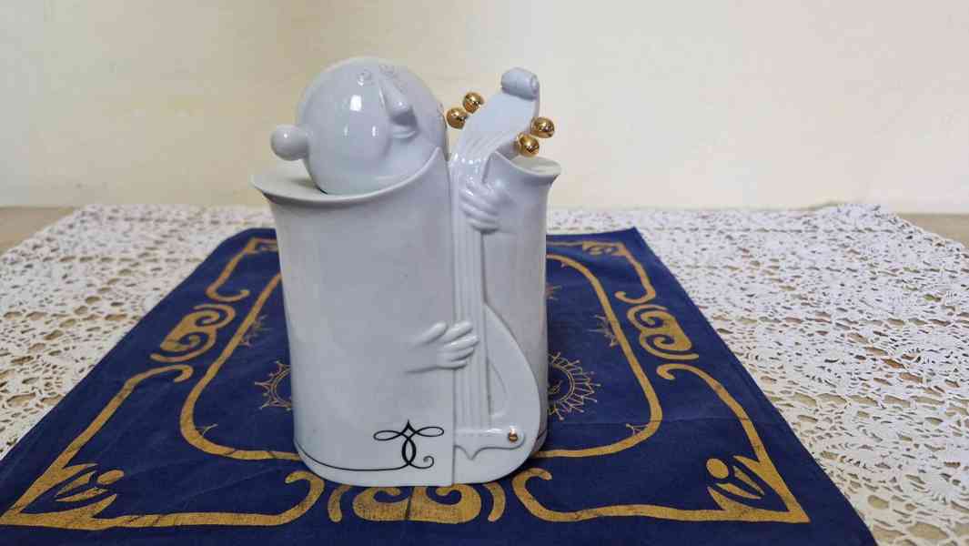 Porcelánová zlacená plastika, Muzikant - Royal Dux Atelier, Helena Samohelová, signováno, 70 léta 20 stol.