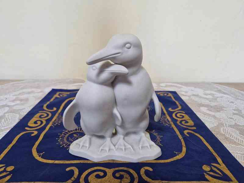 Hezká bílá porcelánová soška, Tučňáci - neznačno, Bohemia Nová Role, 1 pol. 20 stol.