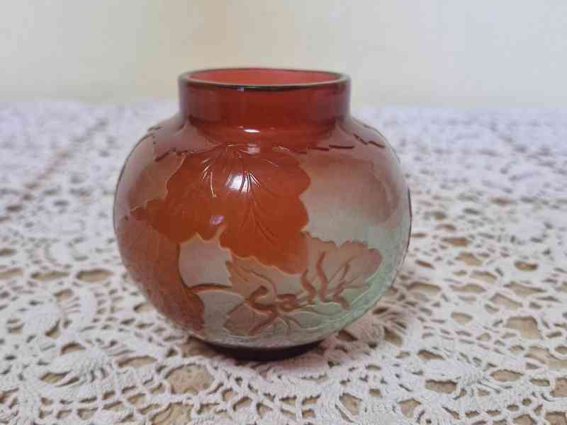 Vázička Emile Emile Galle, vrstvené sklo, značeno, 1 třetina 20 stol.