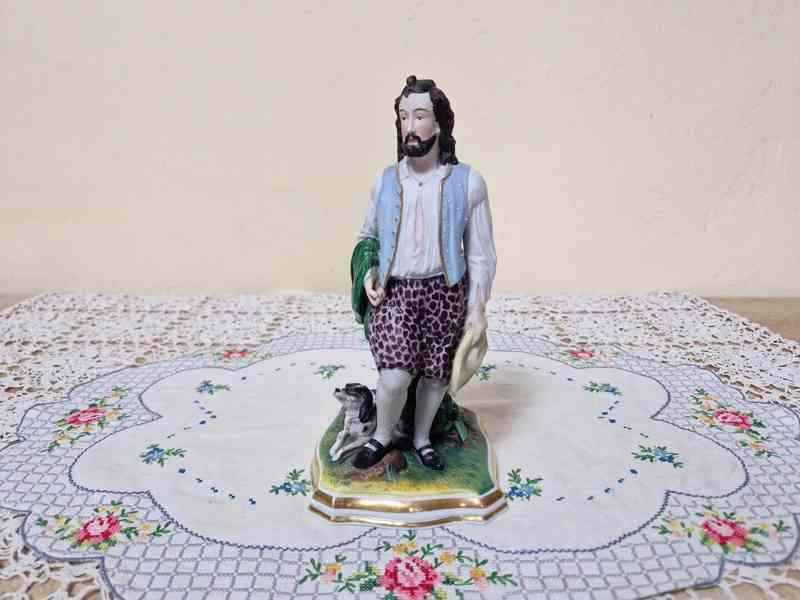 Krásná porcelánová soška Biedermeier, pestře malovaný neglazovaný porcelán, zlaceno, značeno a datováno - Klášterec nad Ohří, 1858.
