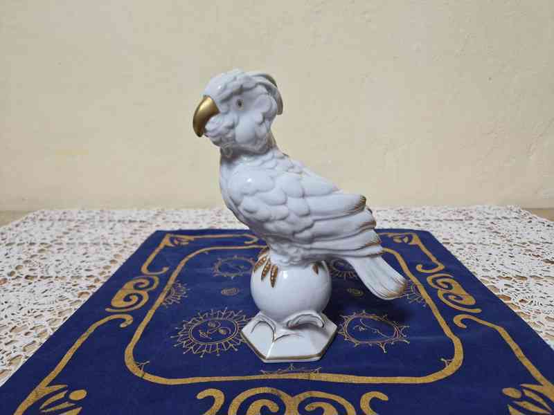 Krásná zlacená porcelánová plastika Papouška - Horní Slavkov, 30 léta 20 stol.