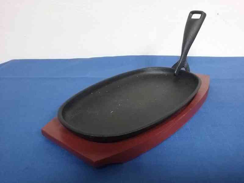 Litinová pánev servírovací s dřevěnou deskou. Litina velmi dobře vede a udržuje teplo, na pánvi možná příprava, ale i servírování. Úchyt na přenášení je odnímatelný, aby se nepřehříval. Dřevěná deska rozměr 28 x 12 cm, pánev 24 x 14 x 2,5 cm, váha 1,1 Kg. Více možností na vyžádání. Cena: 390,- Kč vč. DPH + doprava. (kód: S049004)
