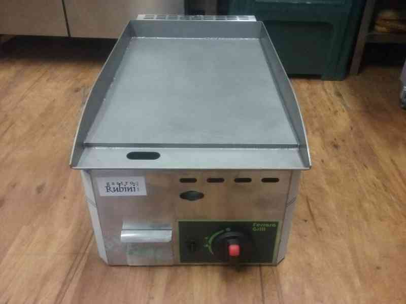 Grilovací litinová deska plynová s vaničkou na přebytečný olej a drobky. Regulace tepoty 50 – 300°C, trysky na zemní plyn + trysky na PB; piezo zapalování, termostat, váha 24 kg. Rozměr ŠxHxV: 330 x 600 x 280 mm, rozměr plochy: 326 x 485 mm, výkon: 4 kW. Na vyžádání: 2 a 3 zóny, chromová / rýhovaná plocha. Cena: 7.690,- Kč vč. DPH + doprava. (kód: G761901)