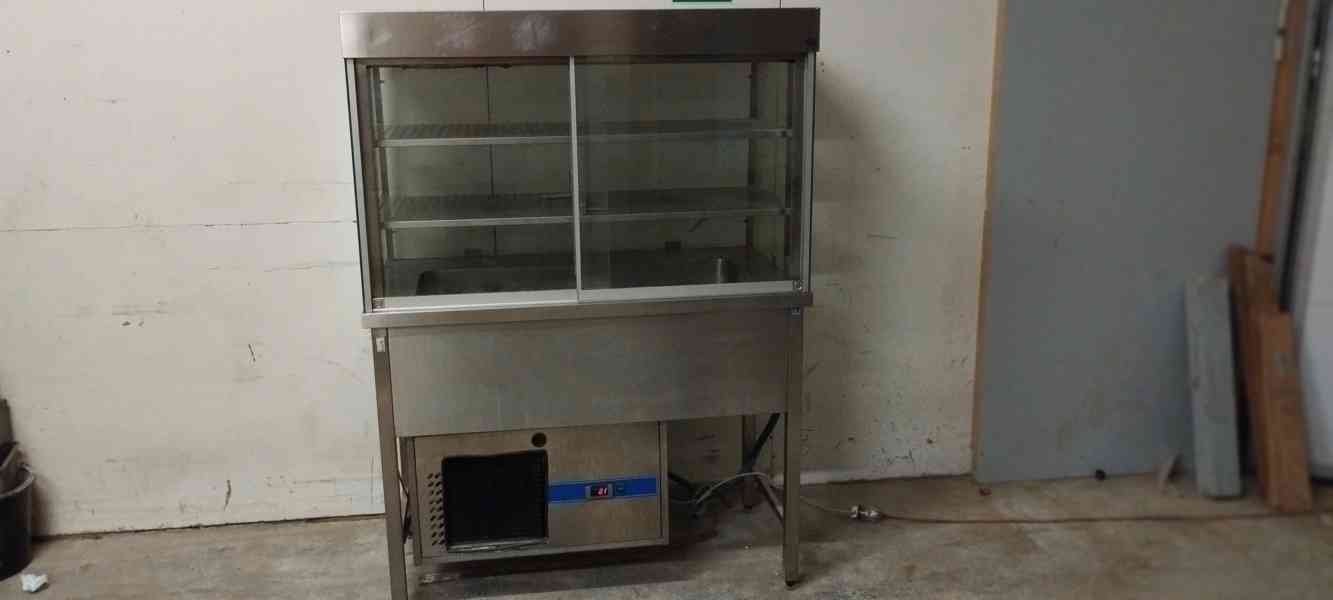 Chladící stůl s vanou na chlazení: pivo, nealko, destiláty, víno atd. v láhvi; sklo pro čepování na hladinku, saláty atd.. Nástavbu využijete na bagety, saláty, sýry atd., nebo jen jako ochranu proti úniku chladu. Pro restaurace, catering, bar, bistro, pizzerie, obchod atd. Rozměr: stůl s vitrínou ŠxHxV: 120x70x165 cm, vana ŠxDxH: 40x95x30 cm, horní nástavba 2 x police: 47x103 cm. Původní cena 105.000 Kč, bazarová cena: 29.900,- Kč + doprava. (kód: 170822-01)