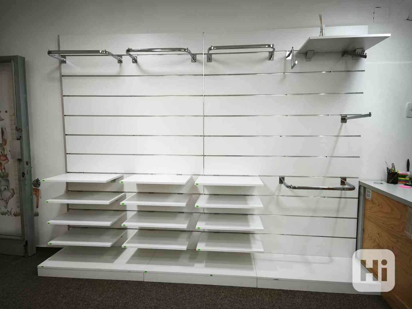 Prodám nástěnné panely slatwall se spoustou komponentů a polic. Cena za všechno. Pouze osobní předání!!!