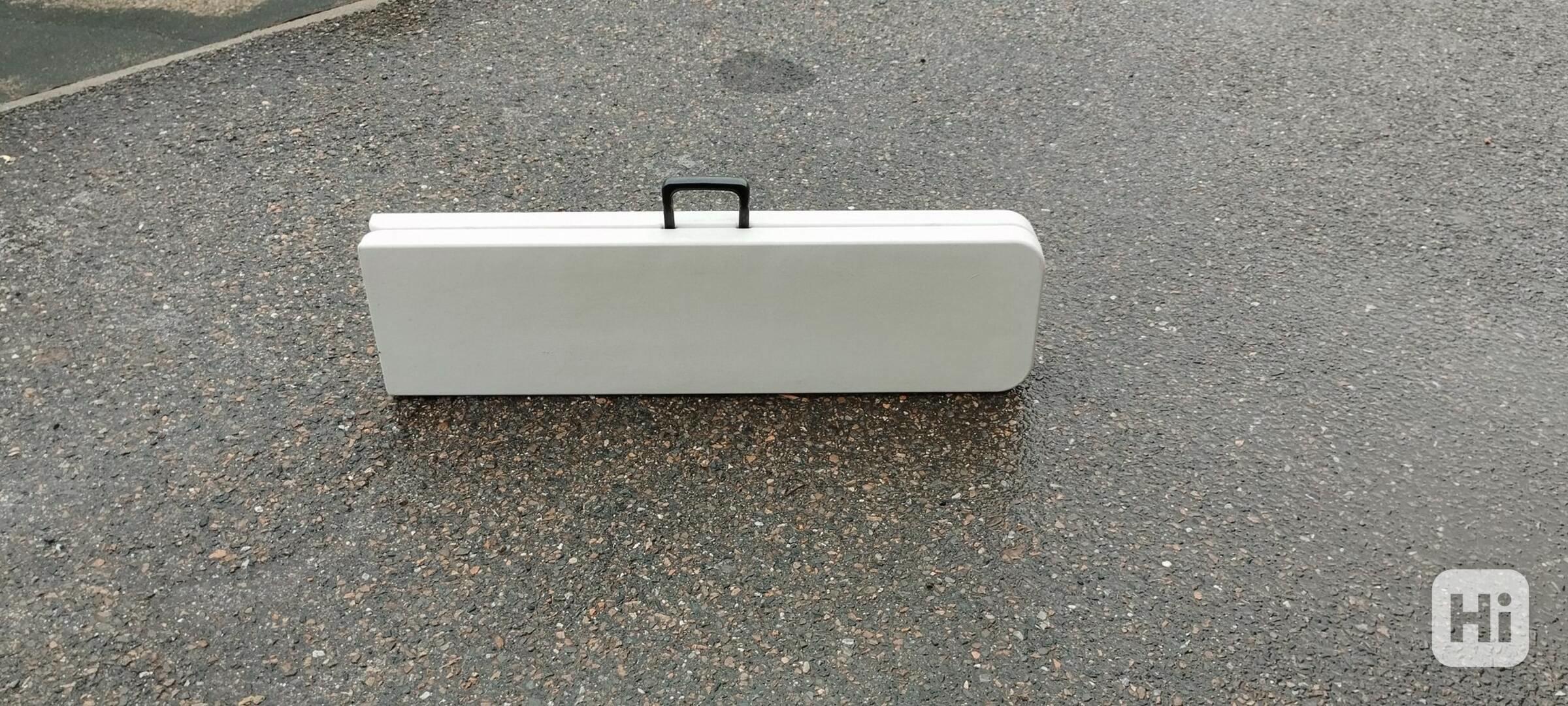 Cateringová lavice - jednoduché složení i rozložení, lakovaný kovový rám a lavice z odolného polypropylenu. Rozměr lavice složené: 910 x 280 x 90 mm; rozměr lavice rozložené: 1820 x 250 x 435 mm; váha: 13,7 Kg. Vhodné, pokud potřebujete nábytek na catering, zahrádku, camping atd.. K prodeji 4 ks za akční cenu. Běžná cena: 1.890,- Kč, výprodejová cena: 1.490,- Kč + doprava. (kód: S950120-B)