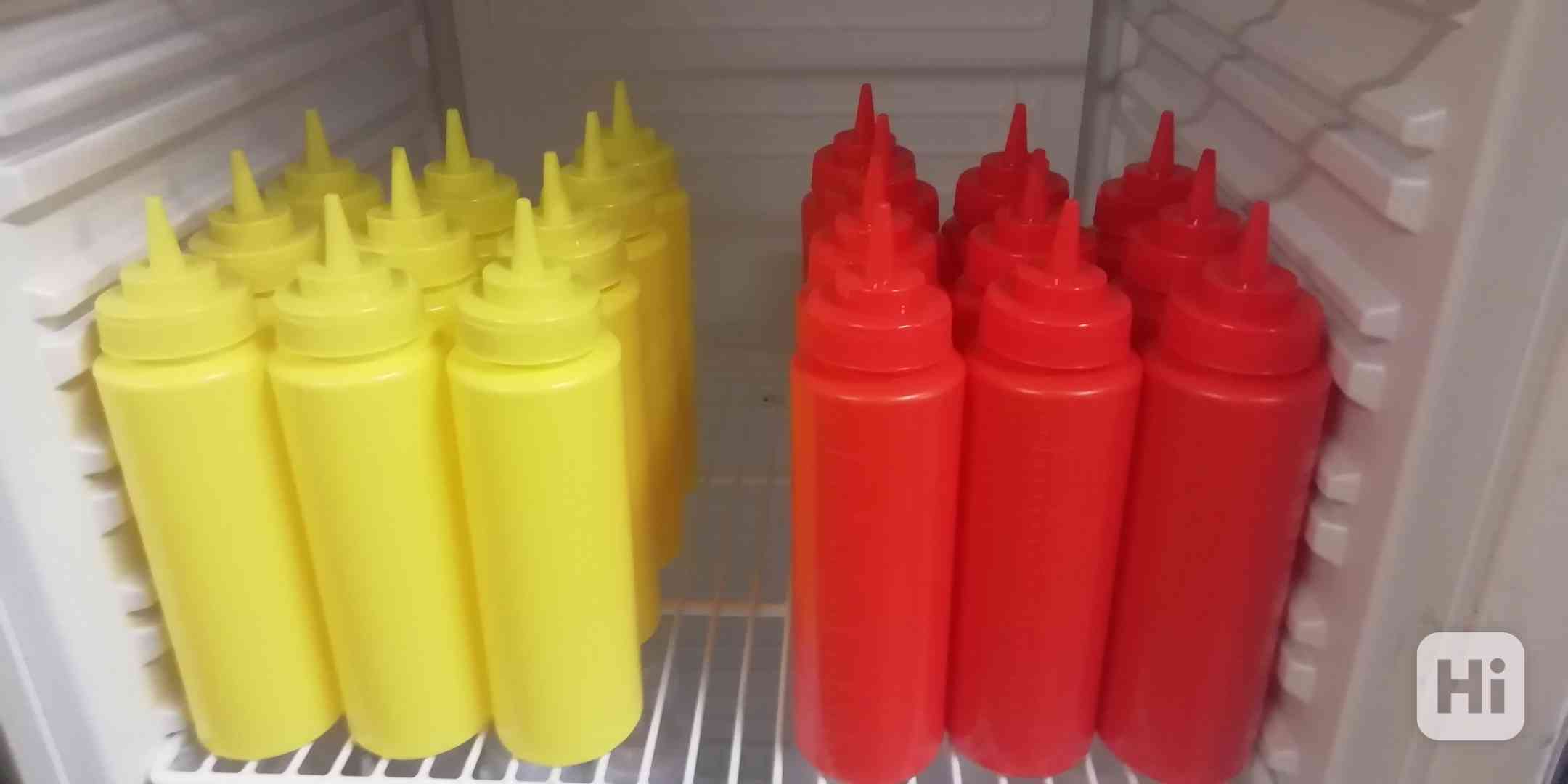 Výprodej skladu: nádoby na studené omáčky s dávkovací špičkou a uzávěrem. Jednoduché na doplňování a výdej. Barevné provedení - počet kusů: červená 15, žlutá 23, průhledná 15. Použijete na kečup, hořčici, tatarku, dresing, omáčky, atd.. Obsah 0,7 L. Běžná cena: 33,- Kč / ks, akční cena za 15 a více kusů: 28,- Kč / ks + doprava. (kód: S065721-2-3)