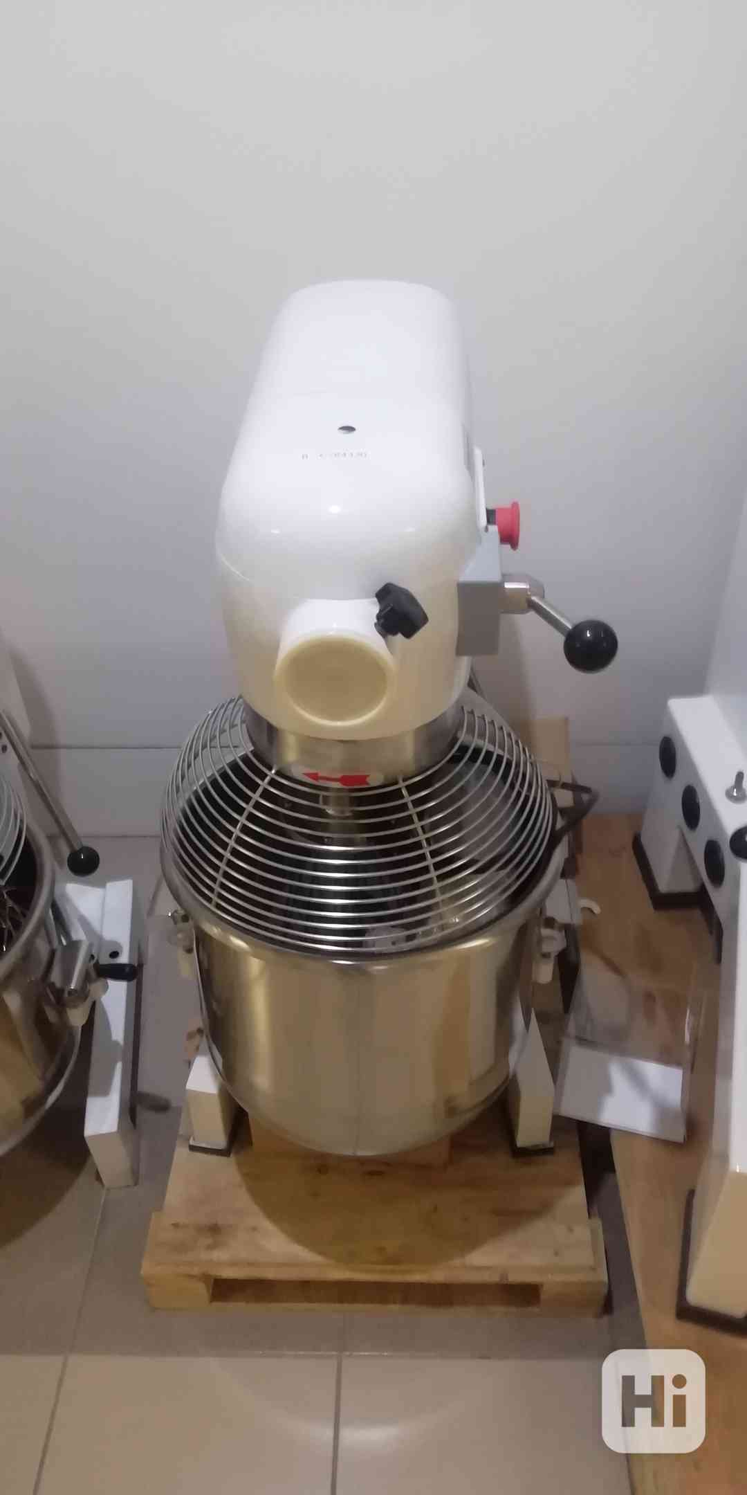 Universální robot B20 s mlýnkem na maso. Nástavce – hák, srdíčko, metla - míchá / hněte / šlehá; 3 rychlosti; otáčky 197 / 317 / 462 ot. min.. Kotlík 20 litrů / 6 Kg těsta, výkon 1,1 kW; příkon 230 V; váha 80 Kg. Všechny části přicházející do styku s těstem jsou z nerezu, mohou se vyskytnout drobné odchylky v laku. Možnost: mlýnek na maso, kráječ zeleniny, přípojka 380 V. Cena: 24.990,- Kč vč. DPH + doprava. (kód: C784207)