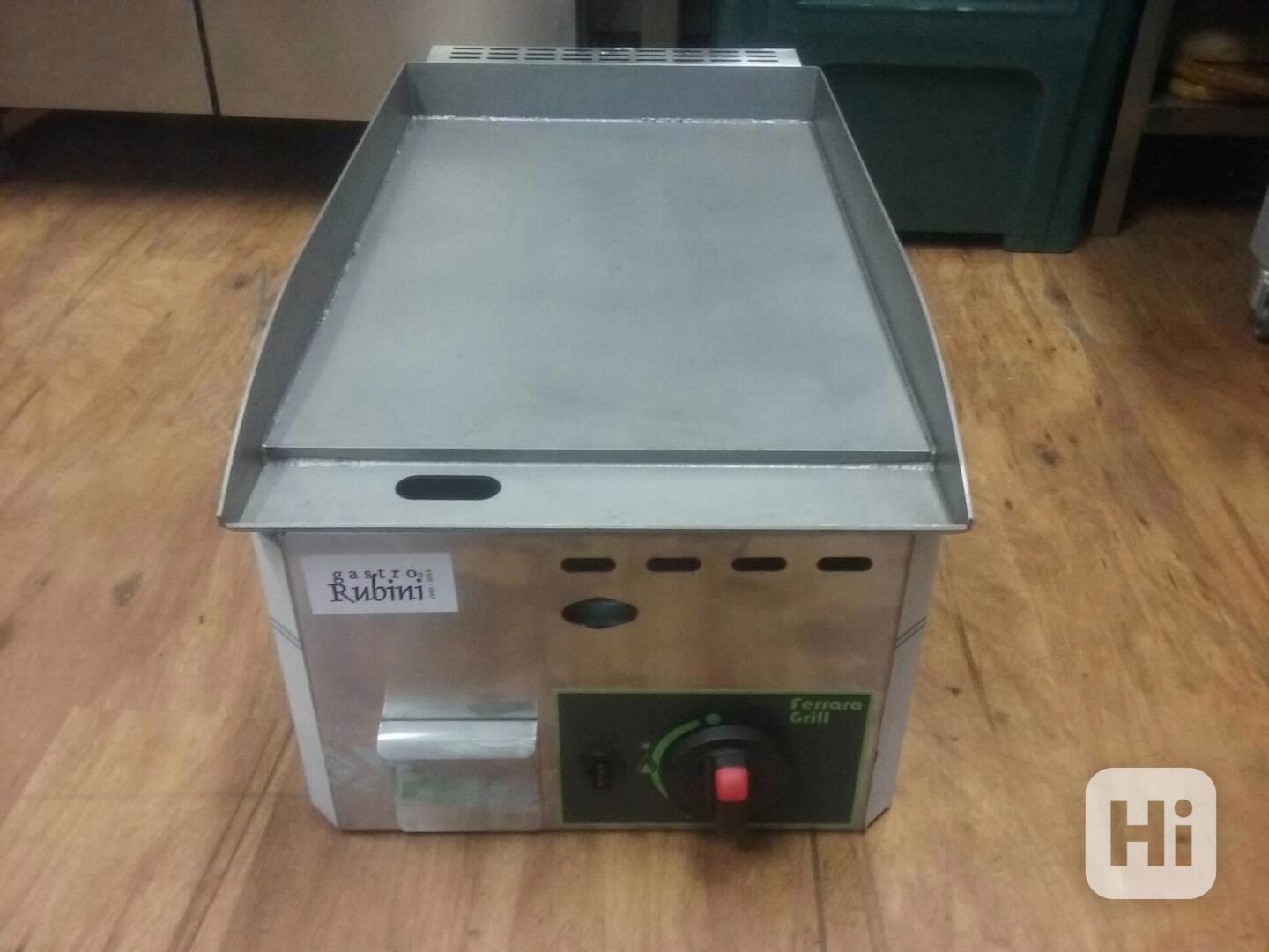 Grilovací litinová deska plynová s vaničkou na přebytečný olej a drobky. Regulace tepoty 50 – 300°C, trysky na zemní plyn + trysky na PB; piezo zapalování, termostat, váha 24 kg. Rozměr ŠxHxV: 330 x 600 x 280 mm, rozměr plochy: 326 x 485 mm, výkon: 4 kW. Na vyžádání: 2 a 3 zóny, chromová / rýhovaná plocha. Cena: 7.690,- Kč vč. DPH + doprava. (kód: G761901)