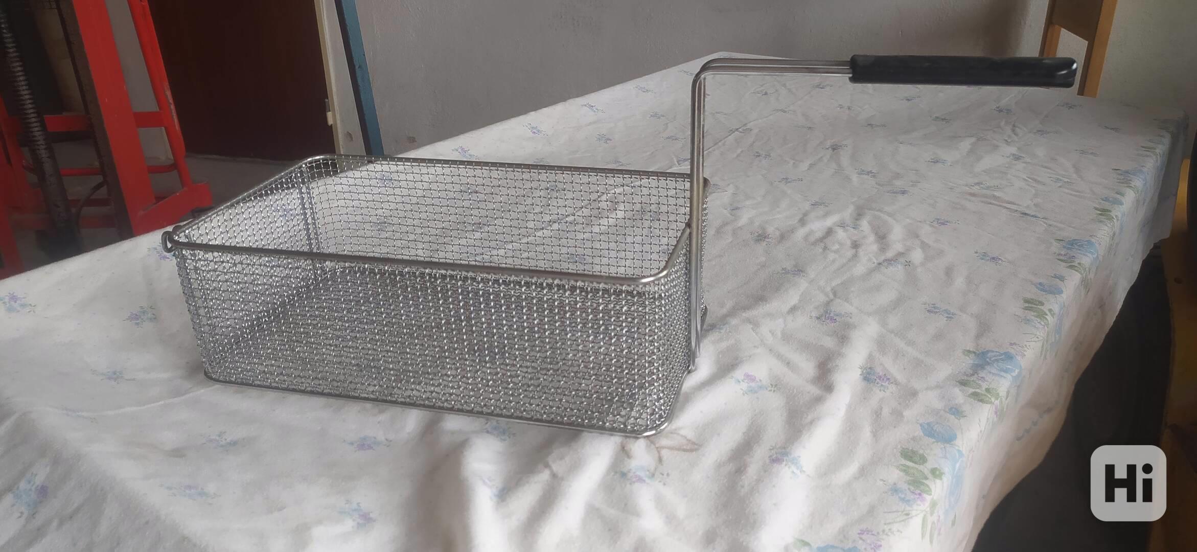 Koš do velké fritézy použitý, ale v dobrém stavu. Rozměr ŠxDxV: 22x37,5x12 cm + madlo: 23 cm. Nevyhovuje vám rozměr, pošlete požadavek. Cena bazar: 1.990,- Kč + doprava. (kód: 070922-03)