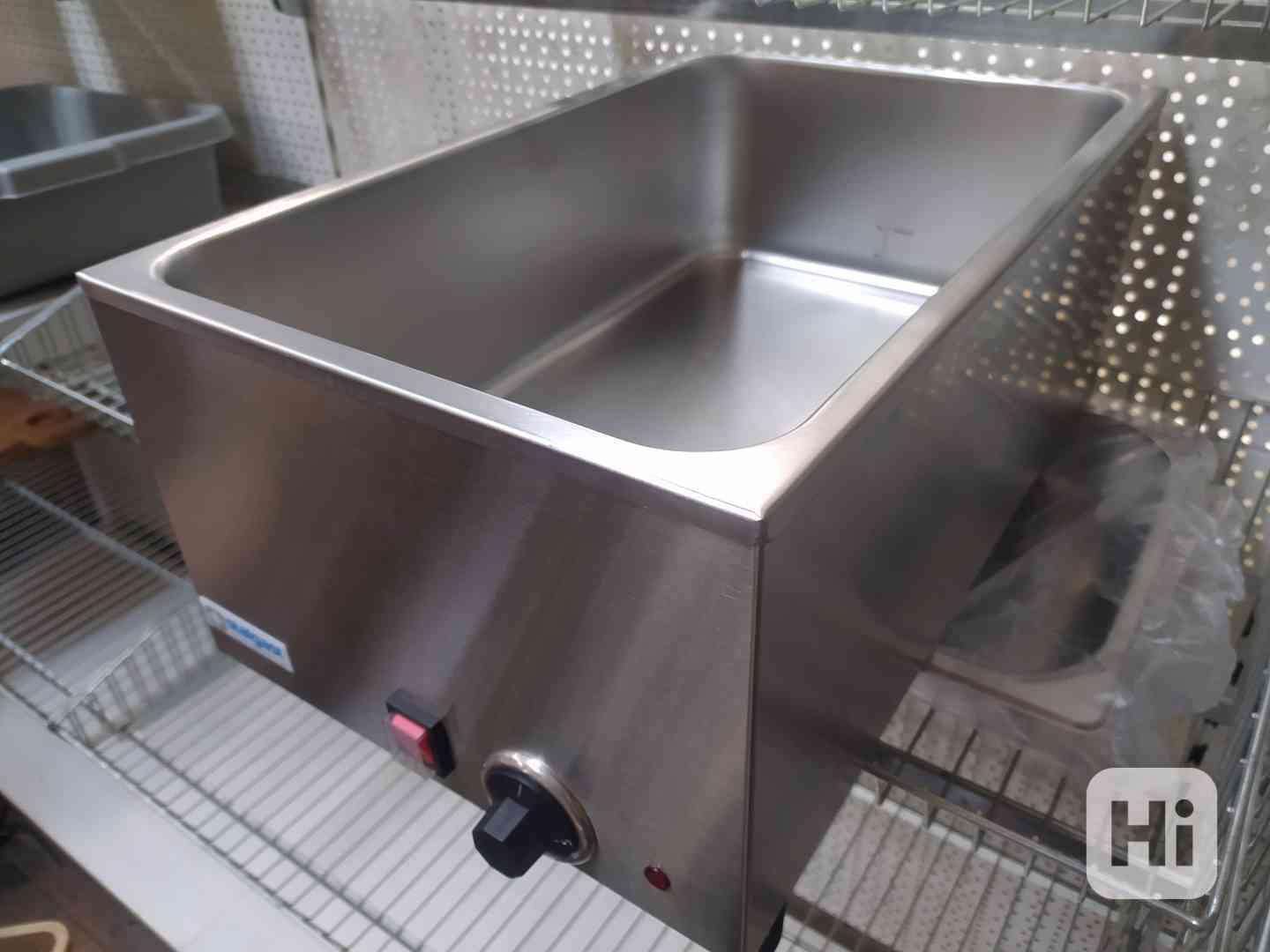 Bain-Marie EKO, teplá vana – pro kombinaci gastro nádob 1/1. Hloubka vany 150 mm, teplotní rozsah 0 – 90°C, rozměr ŠxHxV: 340 x 590 x 242 mm, výkon 1,2 kW, přípojka 230 V, cena bez GN, GN sleva 15%. Cena 3.590,- Kč + doprava. (kód: S741155)