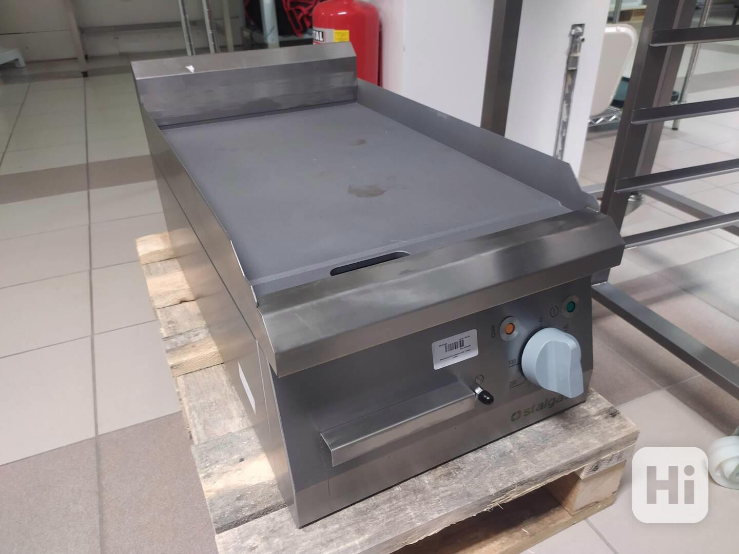 Gril plochý hladký bez podstavce, možno položit na stůl nebo výběr podstavce (není v ceně), rozměr ŠxHxV: 400x700x250 mm. Nastavení teploty do 300°C; příkon 400 V; výkon 4 kW; zásuvka na přebytečný olej a drobky; kvalitní provedení, renomovaná fy. Stalgast. Cena: 24.790,- Kč + doprava. (kód: S9730100)