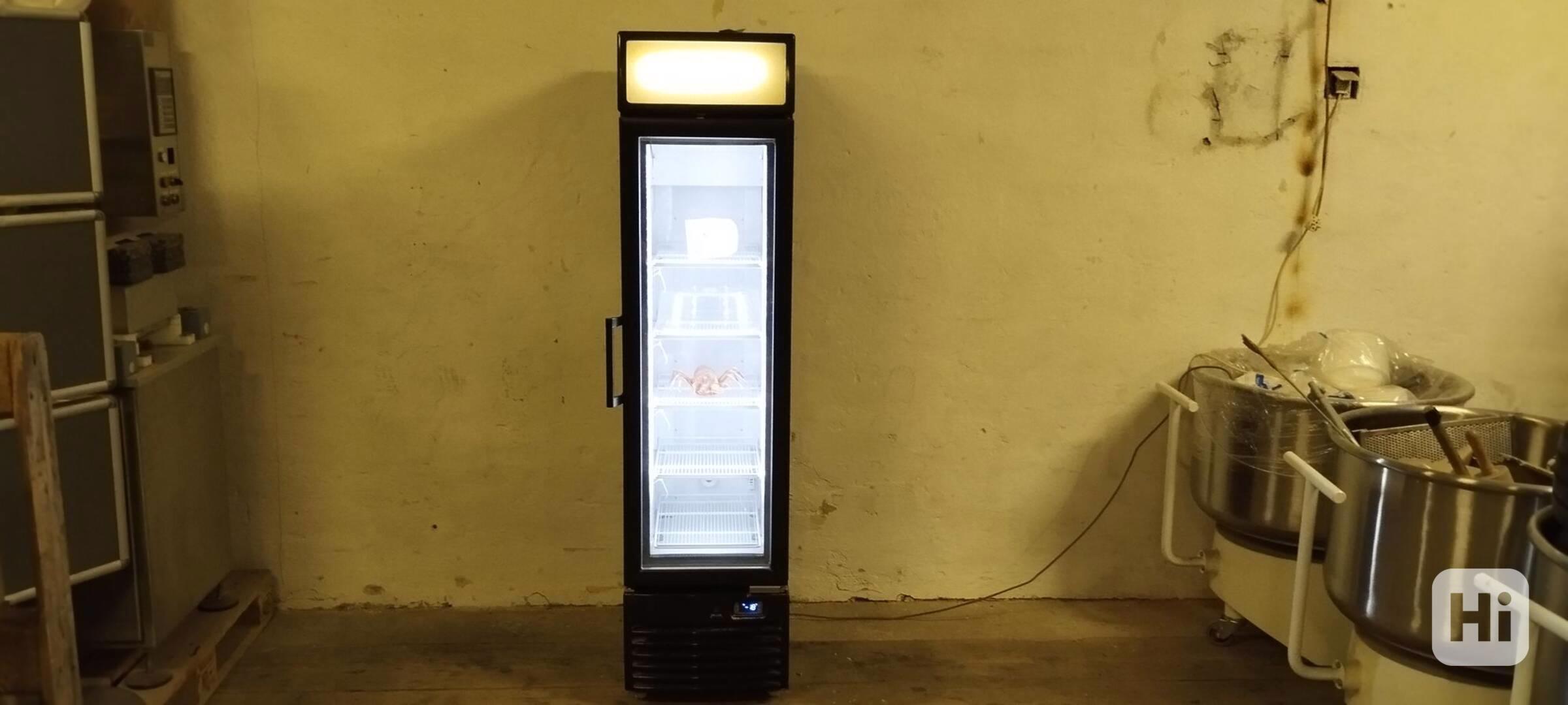 Mrazící prosklená skříň (-18°C), Scandomestic SF 217, Dánsko. Vhodné na všechny možné potraviny: dorty, zákusky, zmrzlina, ovoce, atd.. Reklamní osvětlená plocha, vitrína má černou barvu, možnosti polepení. Rozměr VxŠxH: 1790 x 445 x 600 mm; vnitřní prostor: 1090 x 390 x 300 mm, 5 x drátěná police 380 x 290 mm. Obsah 142 L, LED osvětlení. Velmi kvalitní provedení, původní cena: 42.990,- Kč výprodejová cena: 16.500, Kč + doprava.(kód:081020-04)