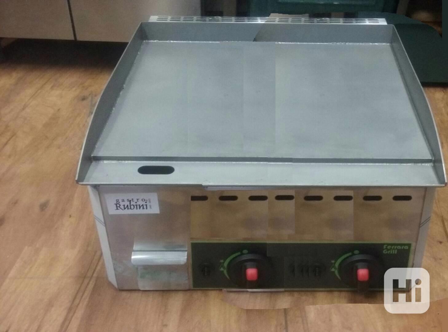 Grilovací litinová deska plynová – dvě plochy se samostatným ovládáním. Vanička na přebytečný olej a drobky. Regulace teploty 50 – 300°C, trysky zemní plyn + trysky na PB; piezo zapalování, termostat, váha 44 kg. Rozměr ŠxHxV: 660 x 600 x 280 mm, rozměr plochy: 656 x 485 mm, výkon: 8 kW. Cena: 13.990,- Kč vč. DPH + doprava. (kód: G761902)